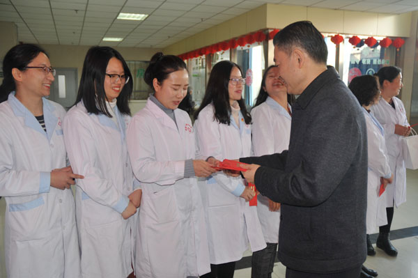 旺狗报喜辞旧岁,金猪纳福迎春来。2月4日,农历大年三十下午,校党委书记李兴旺、校长吴普特、党委副书记徐养福、吕卫东,副校长罗军、郑英宁一行到校医院看望慰问除夕仍坚守岗位的工作人员。党委校长办公室、工会、后勤处等部门负责人陪同看望并慰问。