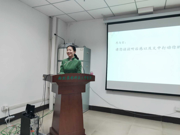 讲座由屈宁宁副院长主持。讲座开始刘威老师以一段朗诵切入主题,从发声技巧、口语表达方面进行了培训及示范,教大家吐字清晰是最基本的要求,字正腔圆必须建立在气息的基础上,现场示范、指导大家应该如何正确的运用气息、准确发音及合理的表情手势。现场示范教师优雅的行、站、坐姿。强调教师着装要求、发型搭配,着装要干净整洁,正装或职业装,仪容端庄。刘威老师声情并茂、生动活泼、内容详实、互动性强的讲座赢得了大家阵阵掌声。