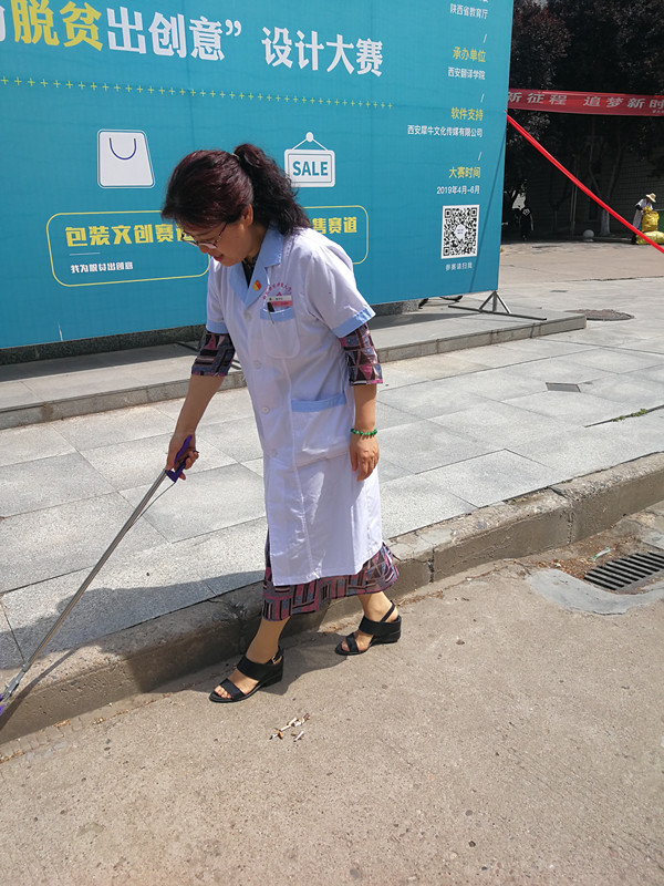 在医院院长穆沛红、党总支书记颜玉怀带领下,我院医务人员及红会志愿者一起捡拾烟头,在学生宿舍区、食堂等公共场所张贴禁烟宣传海报,查看公共场所有无禁烟标识并登记。在学生密集的西雕旁悬挂标语横幅,对来往学生、老师发放宣传资料300余份,现场调查同学吸烟情况,男同学吸烟者较多,女生也有少数吸烟者。在学校红会号召下,同学们参加“拒绝吸烟”现场签名活动。