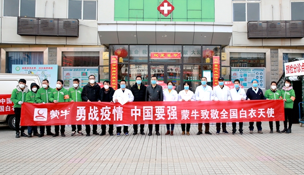 “勇战疫情,中国要强。”2月8日下午,一阵雄浑的呐喊声在校医院大楼前响起。蒙牛乳业杨凌总经销—杨凌凌杰商贸有限公司向我校捐赠纯牛奶的仪式正在这里举行,一提提纯牛奶摆放得整整齐齐,副校长马建华、校医院医护人员等与蒙牛乳业杨凌总经销的员工们共同为国家阻击新冠病毒呐喊加油。此次蒙牛乳业杨凌总经销共向我校捐赠三个类别的纯牛奶829提,出厂价3.8万余元。