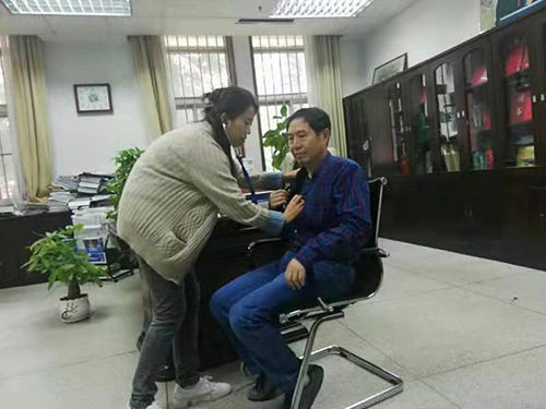 通过上门服务,校医院对疑似高血压、糖尿病的老师,督促他们来医院做进一步的检查,达到治未病。对内分泌异常的老师,帮助预约西安交大一附院专家及时就诊。中医康复科医生现场开展按摩、手法复位,指导学做颈椎操。